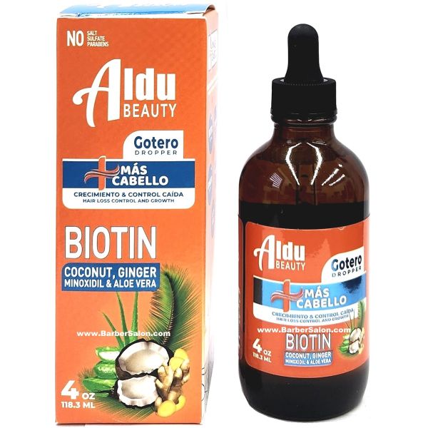 Serum enriched with Biotin, Minoxidil, Ginger, Coconut extract, Aloe Vera, and other natural compounds to control hair loss and promote healthy, strong hair growth.